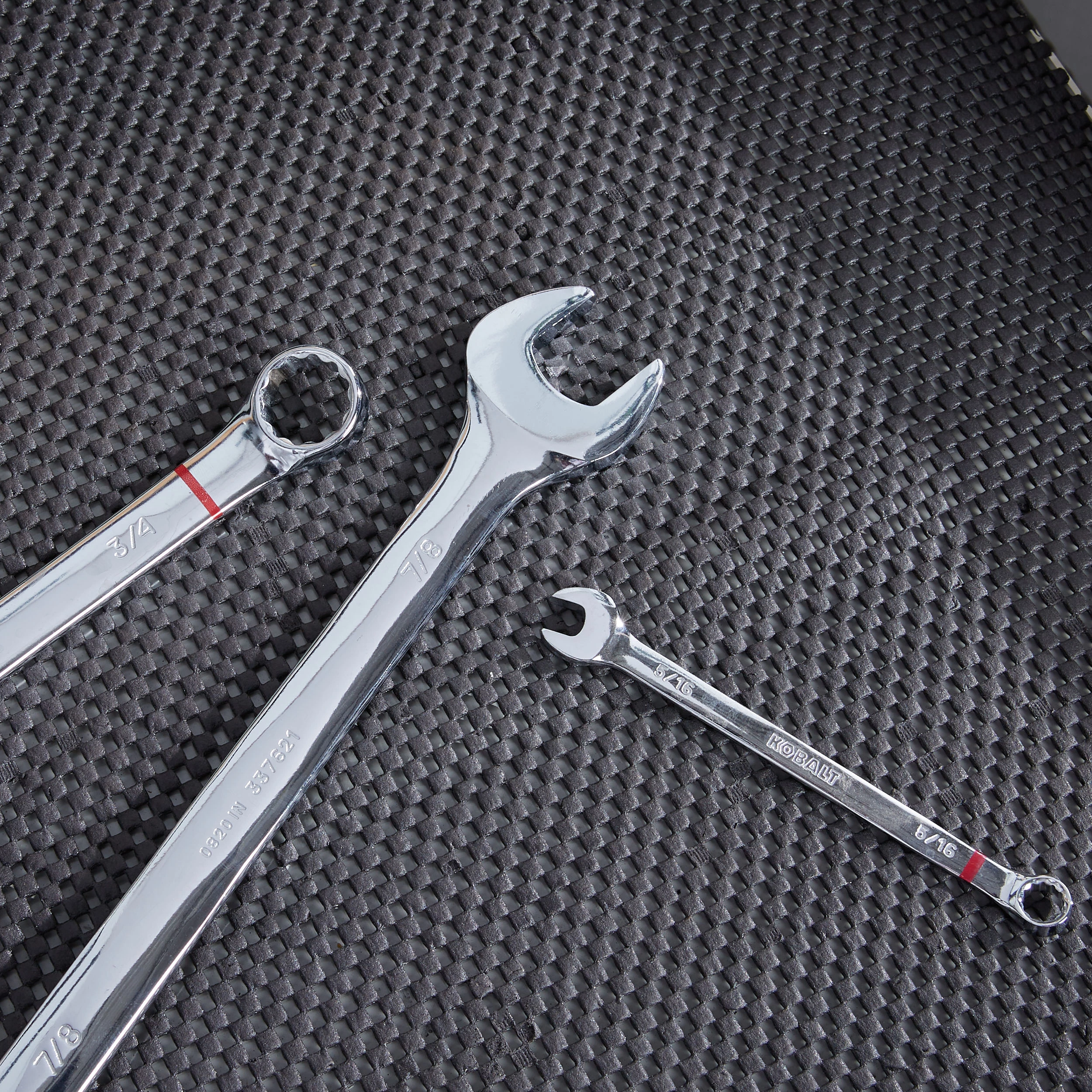 - Wrenches are marked with a hard-stamped size callout and a red color stripe to help quickly identify SAE wrenches