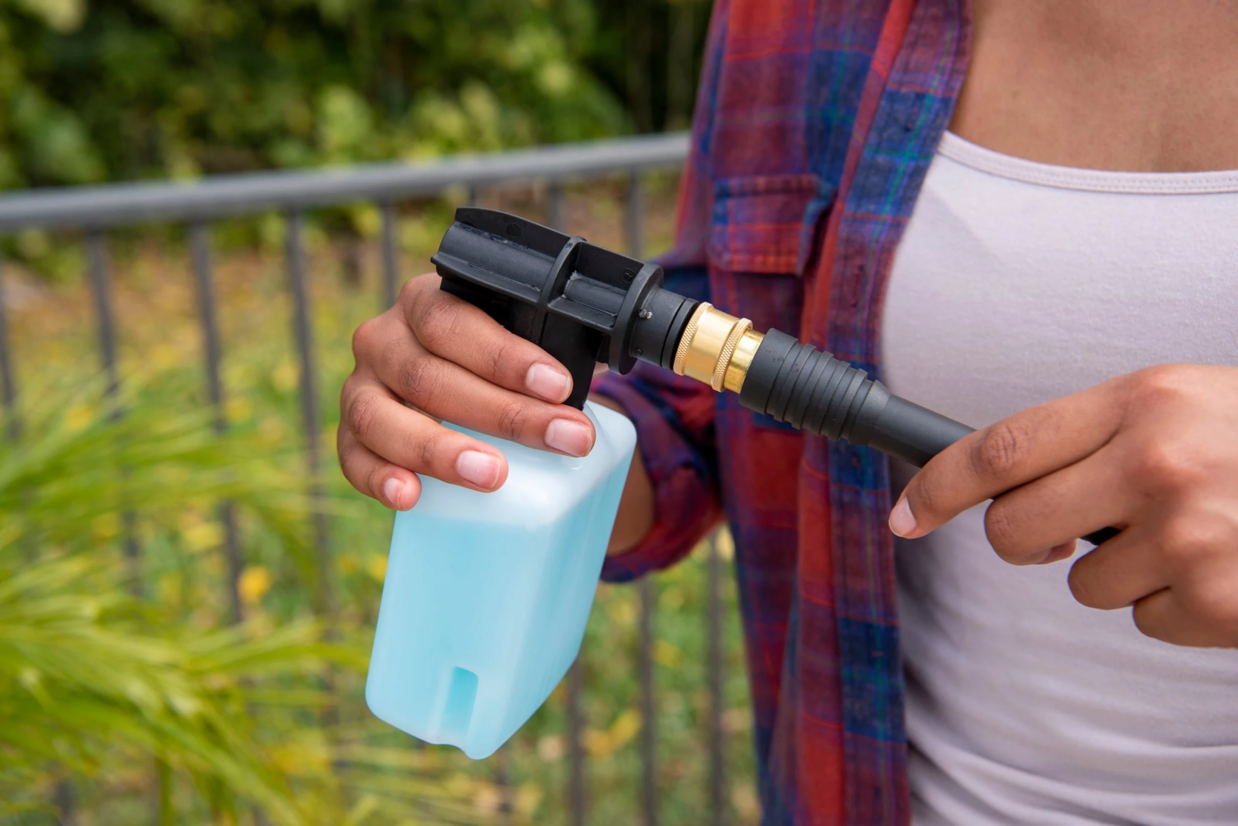 - Compatible with all standard garden hoses; 3/8-in quick-connect fitting included