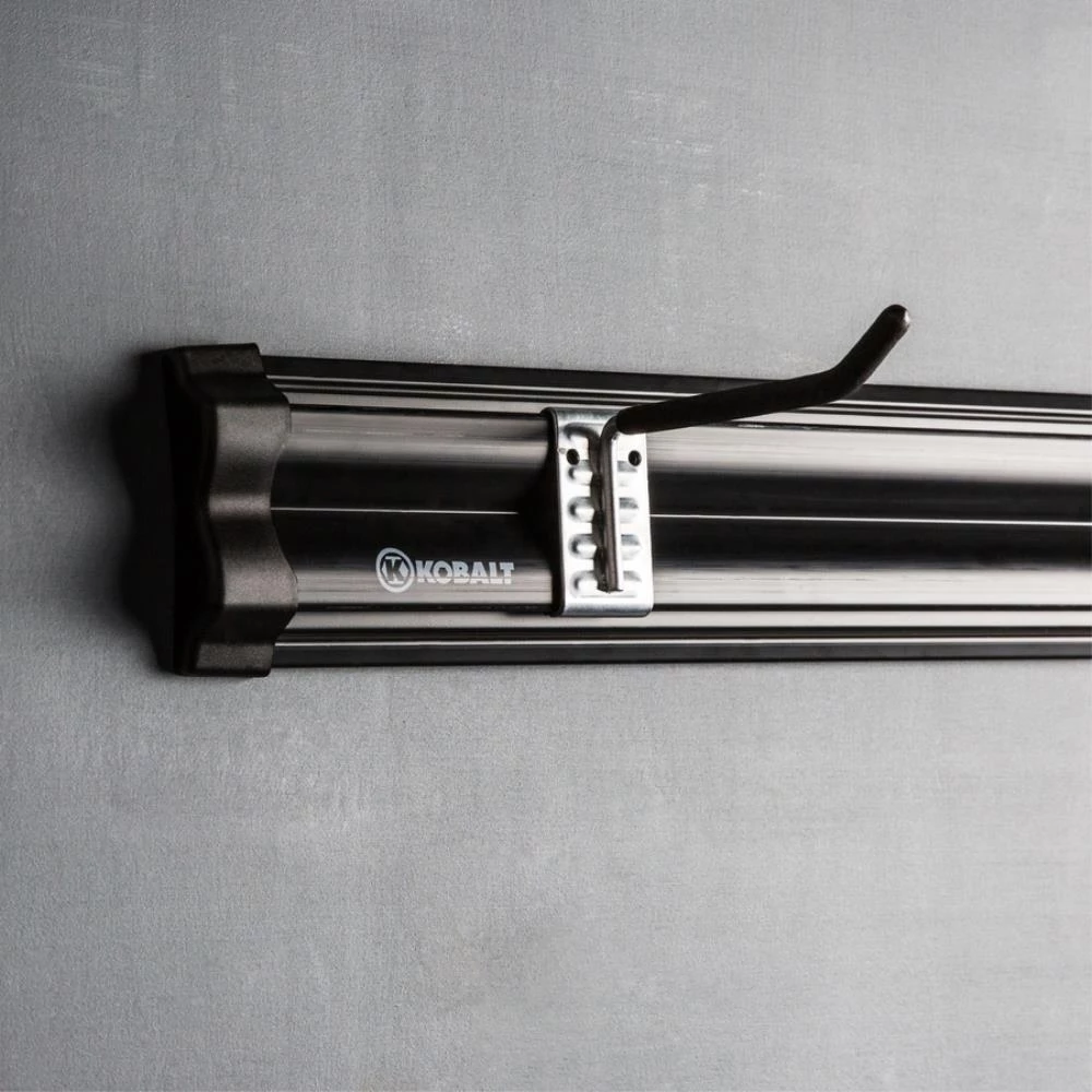 Kobalt K-rail hook helps organize your garage, home, and workspace. It is easy to attach and adjust on the k-rail so you can make a customized garage storage system that can change as your storing needs change.