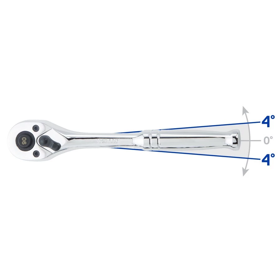 - Quick-release button on the 90-tooth ratchet allows for rapid socket and accessory changes
