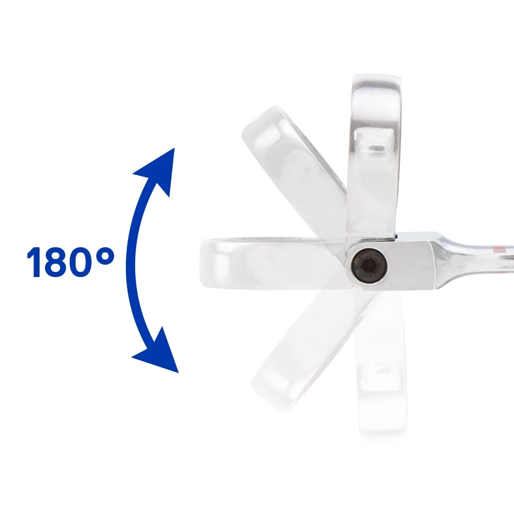 - Box end pivots 180 degrees, providing unlimited leverage and allows access to the narrowest of work areas