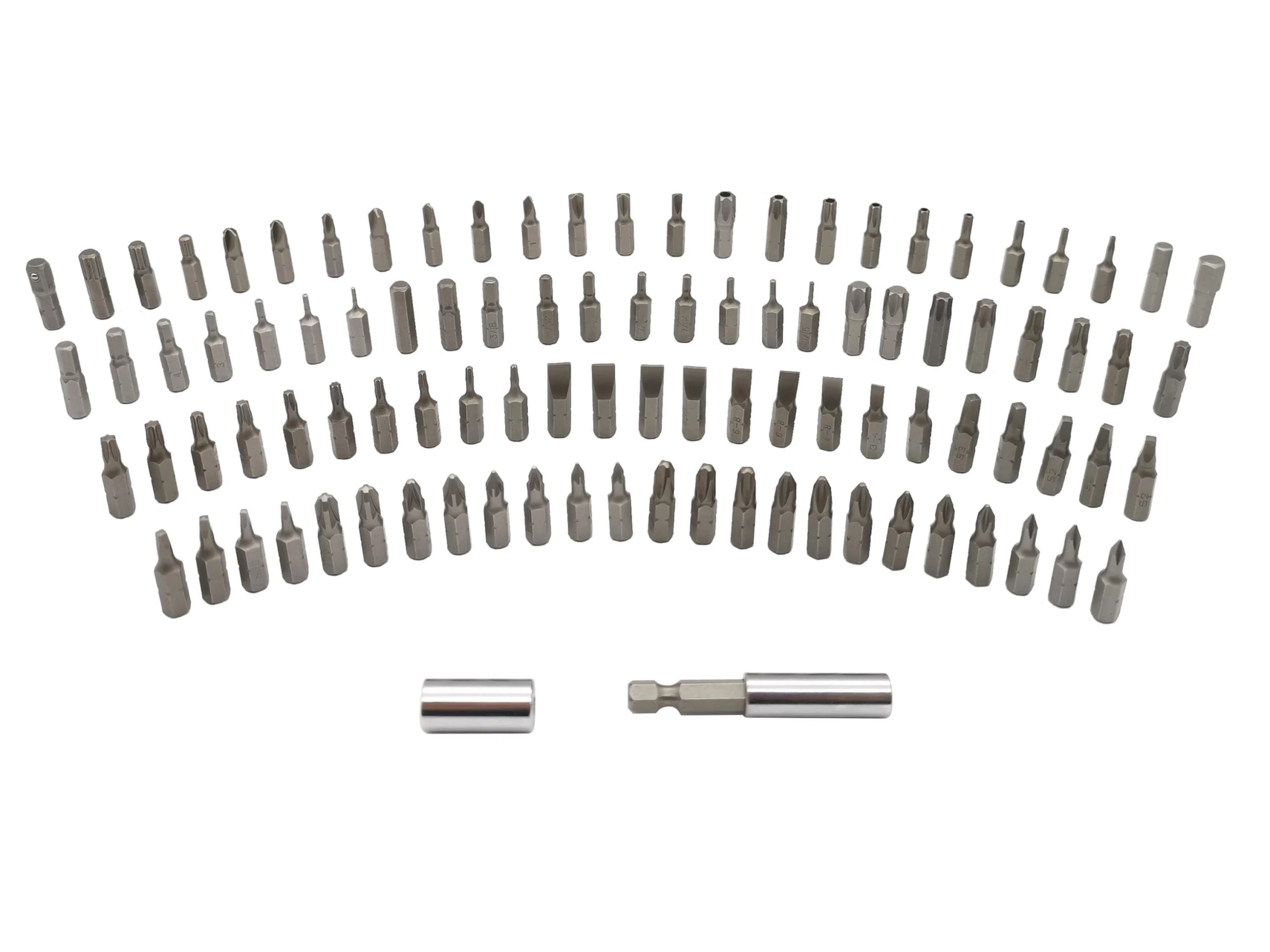 This Kobalt 100-piece ultimate screwdriver bit set includes the most popular screwdriver bit sizes. Twelve (12) different style tips to cover most jobs. Includes hard to find security style bits. Made of durable S2 steel for long life.