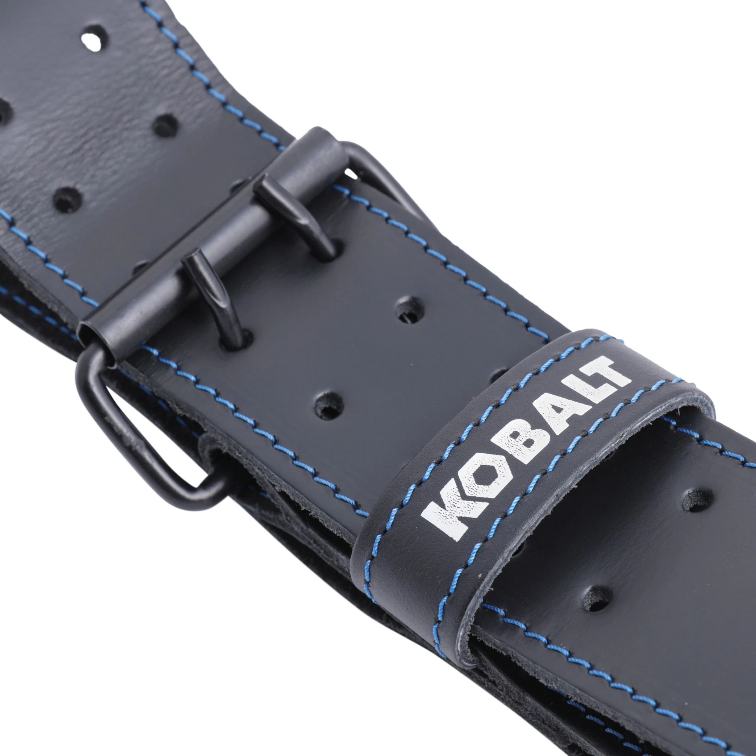 A superior heavy-duty leather work belt with a double-tongue roller buckle.